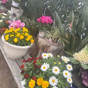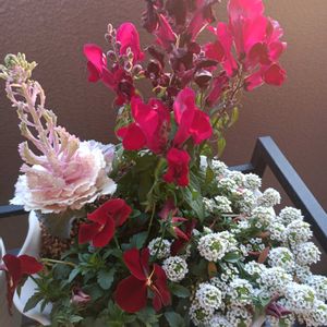 12月に作った寄植えです。かなり大きくなってキレイです。葉牡丹から花も出てきました。
