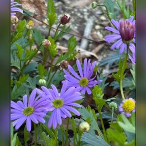 こんばんは✨ 今日は曇りで気温も上がらずで寒かったです🥶 ①近くの商業施設の歩道脇に植えられている花壇の中で可愛い一杯の蕾をつけている紫色のお花💜 ブラキカムかな🤔間違ってたらごめんなさい🙇 暖かくなったら一面に咲いたらまた綺麗でしょう😍💜 ②うちの昨年から寄せ植えにはいっているカルーナのお花と蕾が可愛い🤍💓 先端のグリーンのはそこから蕾がでてくるのかな🤔 ③プランターに種まきっこのルピナス ピクシーデライト😉何色になるのか楽しみですが ここのところの寒さでお花が咲いてくれるがどうか😆🤔🤣 こぼれ種からのノースポールもあちこちから蕾が出て来ています🤍💚 またその間から突然昨年の球根が残っていたのか 葉っぱがニョキニョキ出て来たと思ったら 蕾もみっけ😍💓 ④その他のうちの蕾たち💗 2年目のミディ胡蝶蘭の蕾がふっくらとしてきました💗 真ん中は少し見づらいですが イベリスと一緒に植えていたフリージアの球根を掘りあげた後の中から蕾が付いてました😍 掘りあげて植えた方は蕾もまだです🤔 何色が咲くかこれまた楽しみです🥰 ⑤①と同じ場所で見たギョリュウバイの蕾が真っ赤でコロンとしていて可愛かったです☺️🔴💓 🏷️金曜日の蕾たち 🏷️つぼみに魅せられて 🏷️蕾フェチ 🏷️コラージュ仲間達 🏷️イロイロ参加させて下さいね☺️ 今日も一日お疲れ様でした😉 明日は日中は気温があがりそうです☺️素敵な週末をお過ごし下さいね(୨୧ ❛ᴗ❛)✧💕