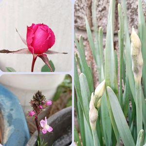 春と冬が一緒の〜 ①枚目 植木鉢の梅が咲きだし ②枚目 アラレが降ったり ③枚目 シモバシラの紅葉 氷華になったの見たくて買ってきたんだけど 枯れない なかなか綺麗だからいいや〜♡ ディル こぼれ種からニョキニョキ 寒さに強いね サラダに入れています ④枚目 1、2輪だけど 咲き始めました ⑤枚目 お出かけ先 モミジにぶら下がってるのって 鳥の巣かなぁ〜 ⚾野球ボールくらいの大きさ メジロとかモズとか 小さめの鳥の巣かも〜 カワズザクラかなぁ〜? 咲き始めてたよ