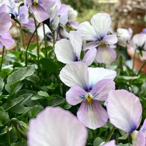 今夕の庭から… 17:00〜17:23 夕方のひんやりが心地良い〜 ❶ 軒下のビオラ.パピヨンワールド ❷ もうこのボリューム パンジー彩翠華 ❸ 同じ様に植えたが右の赤系が一歩リード ❹ 水やりが毎日に..パンビオ寄せ植え ❺ 花いろが変化..美しい夕方のリナリア 🏷️ビオラ・パンジー祭り♪
