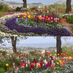 こんにちは😃 本日2投稿目です🤗 先日、神峰公園に行ってきました☺️ 神峰公園の花壇(春バージョン1️⃣) ①いつもの所から見た、太平洋‼️ 曇り☁️空の為,地平線がはっきり 見えなかったです。 (チューリップ🌷,ビオラ達等) ②ヒナギク 別名: デージー キク科ヒナギク属の多年草 色々な色が咲いてました😄 ③♥︎シレネ・ピンクパンサーと、 ホワイトパンサー(ナデシコ科) ♥︎リナリア(オオバコ科) ♥︎チューリップ(ユリ科) こちらも色とりどりでした😉 ④ネモフィラ(ムラサキ科) 別名:ルリカ ここでもたくさん花が咲いてま した😊ネモフィラ絨毯! ⑤斑入りアマドコロ(キジカクシ科) 別名:ナルコユリ まとまって咲いてました☺️ 🏷️2のつく日は斑入りの日 🏷️斑入り見つけ隊♪No.23 🏷️2026チューリップリレー 🏷️春色チュ!チューリップ♡ 参加します。