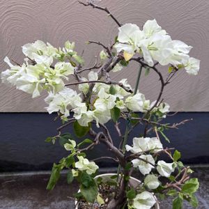 気づいたらブーゲンビレアにお花🌸が❣️ 冬越しで室内に入れていましたが、ピンク🩷とオレンジ🧡はまだまだ咲きそうにありませんが、ブライダルの方が花盛りに❣️ 室内だとピンク🩷色になりそうに無いので☀️お日様に当てようと思ったら☔️☔️☔️