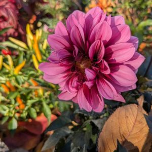 散歩道🚶、花壇でダリア、ブーゲンビリアが咲いています🌸🌸