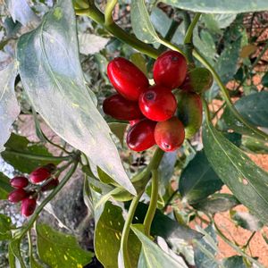 アオキの実💚🫒💚 我が家のはいつもグリーンのままで、赤くならないんだ…と思ってました😅 そしたらいつの間にか赤く色づいていました❤️❤️ 品種が違うのか、グリーンのままの木もあります💚💚🤗