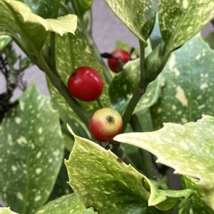 こんにちは(*^^*) 今日はいいお天気になりました☀ 昨日、お店のご挨拶回りを済ませての帰途、 ふらりと車を寄せた所で出逢えた『実』✌ 何の実だろう❓ 下にはどんぐりも落ちていて、 えっ⁉️どんぐりの若い頃ってこんなだっけ❓ などと思いながら、帰ってググりました。 アオキ🌳だそう。。。 『実』シリーズ、13個目ゲット‼️(≧∇≦)/ 【アオキ】 アオキ科(ガリア科)アオキ属 日本原産 花期は3〜5月 雌雄異株。花房が小さい方が雌株で、褐色を帯びた紫色の花を咲かせる。 果期は秋。 種子が未熟なうちは果実の色は青く、エグミや苦味があって、小鳥に食べられないようになっている。段々と中の種子が熟すと共に、果実の色も赤くなる。3月頃、小鳥たちの食べ物が少なくなる頃、食べられるようになり、5月頃まで付いている。 まれに、白い果実を付けるシロミノアオキも自生している。 名の由来は、四季を通じて常緑で、葉だけでなく、枝も常に青い(緑色)事から名付けられた。 25