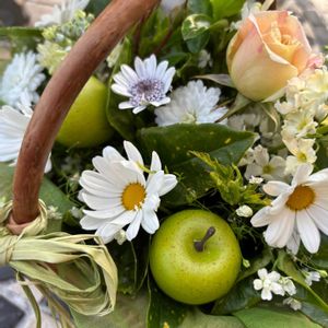 ①最近「アオキ」の葉っぱが気になり、実家からカット✂️してきました。 ②③④「アオキ」の葉を使ってアレンジメントをしてみたくて庭から花を寄せ集め。 花が少ない季節は青リンゴ🍏に手伝ってもらいます。 この「アオキ」の木は亡き祖母の庭から母が移植してきたらしく、私にとっても何だか懐かし〜い葉っぱです。 昔から、庭にはよく植えられていますが、あらためて よ〜く🧐見ると綺麗な葉っぱですよね。