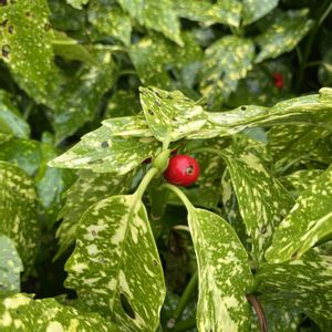 おはようごさいます😊🎀🎶 アオキの実です🔴🌿 撮影日2026.1.19 お出かけ先 広島市 縮景園にて 撮影しました😊📱 赤い実と斑入りの葉っぱが 綺麗ですね🔴🌿✨✨ 今日こちらは雨予報です☔ 雨の後は気温が少し 高くなるようです😊 厳しい寒さもあと少しの辛抱かな😞❄ 暖かい春が待ち遠しいですね🌸🌷🌸 いつも見て頂き ありがとうございます🩷 今日もよろしくお願いします🤗🍓