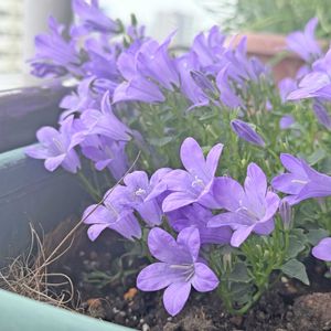 おはようございます。 ベランダの花たちもいろいろ咲いてきてます。 苗を買った時は蕾ばかりだった ベルフラワー。 ほぼ満開になりました。