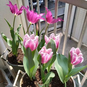 白い覆輪の紫のチューリップもすっかり咲きました キキョウも元気です