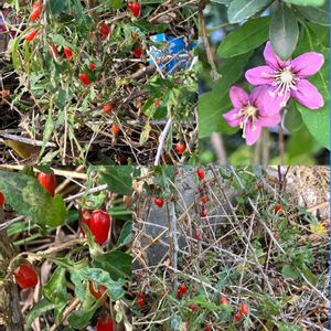 おはようございます😁 🏷️今日のお花 🔴🍀クコ🍀🔴 散歩道にて❣️ ①クコ 花と実 土手にありました😊 ②サザンカ💖 蕾がたくさんあります☺️ ③ガウラ 白とピンク🩷が混じって綺麗🤩 ④アゲラタムとカエル🐸の鉢 街路樹の下で咲いてました😆 ⑤ポインセチア・プリンセチア 色々な色がありました🩵🩷💙💛 (ホームセンターにて‼️) 🏷️金曜日の蕾たち 参加します。