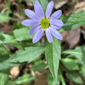 こんにちは☁️ 丘陵地にて いつもの所に 咲き始めていました。 簡易的に守られている。 ミヤマヨメナ 山地の林内の日陰に自生。 キク科シオン属の多年草。 花期5〜6月