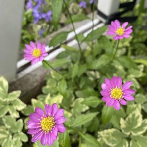 ミヤコワスレ(都忘れ)。昔(1995年頃?)母が植えたもの。 このピンクのミヤコワスレは、周りの洋風の花ともよく馴染む。 紫のものは、移植したら元気ない…。 湿り気の多い和庭(ドッグラン)に戻そうかな。 ————— Aster savatieri キク科シオン属 多年草 本州、四国、九州の山地に自生するミヤマヨメナの園芸品種