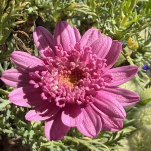 ࣪𓏲ּ ᥫ᭡ ₊ ⊹ ˑ ִֶ 𓂃 ①②③ マーガレットフランボワーズスフレ (2年目~) ラズベリーカラーの濃淡が美しいポ ンポン咲きの八重咲き品種。 咲き進むと色変のグラデーションが楽しめます♪ ④チョコレートマーガレット 黄色いマーガレット (3年目〜) 香りも楽しめる🍫💓 草姿がコンパクトで仕立て易い 黄色いマーガレットと共に寒さで 咲いていた花や蕾が枯れていきましたが花が咲き始めてきました(^-^) ⑤マーガレットファイヤークラッカー(7年目〜) 中輪タイプの八重咲き品種 開花時期 11月〜6月 一昨年は脇芽から成長してきて復活 今季も咲いてきました💗 (サービス品でお迎えしていました)