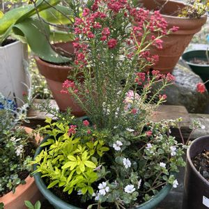 投稿4回目🌸 今回も玄関の植物紹介です🐝 1枚の写真の順番から「ライスフラワー、ゴールデンクラッカー、葉牡丹、シレネ、ビオラの寄せ植え、レウイシアエリーゼ」です🫶 次で玄関前おわりでーす