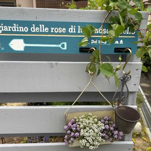 こんばんは😊 今日は曇り空の大阪でした 庭活にはサイコーです⤴️ ①⓶ 器用なバド仲間のパパさんが作ってくれたプレートです フェンスがメチャ可愛く なりました⤴️ ③ ちょっと前のハナミズキ ここ数年花が少なくて⤵️ 娘婿が剪定してくれて 今年は見事に花が咲いたぁ⤴️ 又来る時ビールいっぱい冷やしておくねー🍺 ⓸ 小さん苗から育てた ライスフラワー今や!90センチ! 鉢植えです