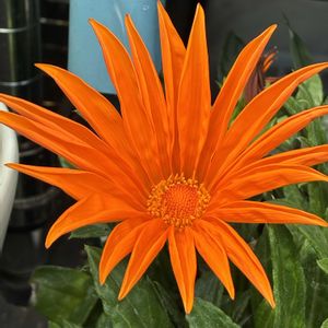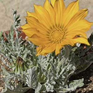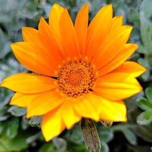 PWさんのガザニアが咲きました。 ビタミンカラー♡で元気パワー全開。 シルバーの葉っぱとのコンビで引き立っています。