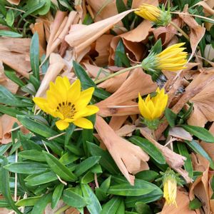 ガザニア いつもの公園にずーっと咲いています〜🎶🤗 水仙… オタフクナンテンの黄葉バージョン です♪〜