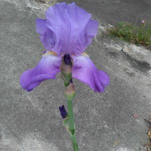 💚スライドしてね💚 PM0:25 どんよりした空の下で ジャーマンアイリスが 開いていました。 3歩を三回で畑です。🤗