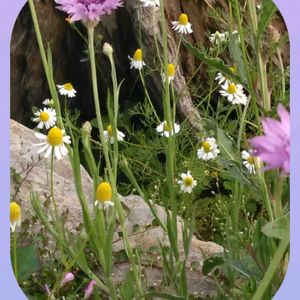 ジャーマンカモミール❀ 菜園の一角で風に揺れ 触るとフワ〜リ優しい香り🌿