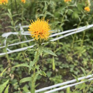何処から来たのか見慣れない花🌼調べたらベニバナと出てきた。 特性などよくわかりませんが見守ってみようと思います。