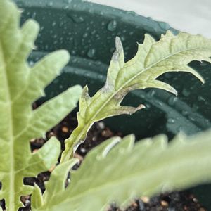 ❓❓❓アーティチョークの苗を2鉢買いましたが、葉っぱのカタチが全然違うのです🤔ギザギザと丸いの。葉っぱのカタチ意外はそっくりなんですけどね。雑草だったりして💦
