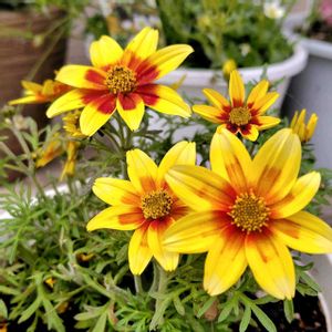 雨の日には明るいビタミンカラーを🧡💛😘 我が家の鉢植え〜🪴 1️⃣2️⃣3️⃣ 〜キンセンカ〜🧡 ↖️左上から🌀左巻き🌀 くるくるくるくる楽しんで♪ 順に咲く姿可愛いネ 全開したら花びら何枚あるのかな🤔😆 恋占い楽しめる🤣 昨年12月に作った寄せ植えが🪴 ビオラやアリッサムに負けないくらいに成長🙌 蕾が次々と🤗 4️⃣5️⃣ 〜サンジソウ〜💛 多肉植物 その名の通り午後に開花🌼 太陽みたいなコ☀️ 日差しを浴びていた日に 今日☔️は残念🥲 🧡💛可愛いお花で元気モリモリ💪