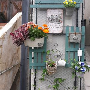 玄関横給湯器に吊り下げコーナーを 12月初めに作り直し、 その時お迎えしたお花たち~🎶 まだまだ可愛く咲いてるけど、 暑くなり、小さな鉢では、 お水が足りなくて😱💦 そろそろお引っ越し~🎶 金魚草ブランルージュ💜 キンセンカ🧡 大きくなりました❣️ 夏越ししたいなぁ~😊 5枚目が設置した時です。 白いマムは年末に元気がなくなり、 地植えにして復活❗ 代わりに黄色ビオラ💛 これから、クレマチスが 上ってくるので、 楽しみです~😊💓