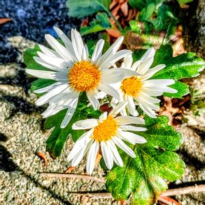 おはようございます。 ご近所散歩しました。 歩道の割れ目から小菊が咲いていました😍 ②歩道の植栽の間から背伸びして冬の陽射しを光合成✨