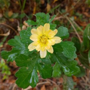 雪降る12月18日、 ツツジの木の下に咲いています。 直径1.5cm位の小ぶりの花です。 どなたかご存じでしたら教えください。