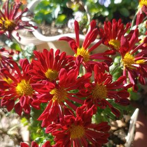 🍀おはようございます🍀 赤い菊がずっと咲き続けています♬ 気持ちも明るくなります(・∀・) ②鉢植えのカシワバアジサイの🌿 真っ赤に紅葉しています ③赤いビオラ❤️ まだ小さな苗… ④栄養系ビデンス ハッピーコレクション💛❤️ 地植えで頑張っています😊 ⑤宿根ネメシア ホワイト🤍 1輪だったお花が増えてきて… 蕾もたくさん付きました🎶