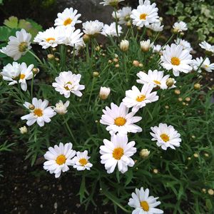おはようございます😄 🏷 今日のお花マーガレット😊 ① 昨年4月の清楚なマーガレット🤍💮 ② 昨年4月白いマーガレットがピンク色に😍 ①② 共に剪定間違えてお星さまに🌠 ③ 昨秋の可愛らしい菊達です💞 ④⑤ 今朝の可憐なノースポールです😍💞