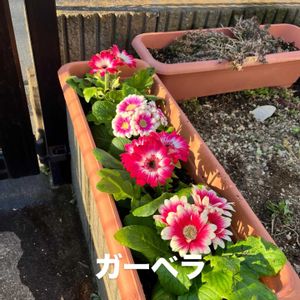【花壇リニューアル】 カインズで、長い植木鉢2つとガーベラとサイネリアと土を購入 庭の入り口を可愛い花達でリニューアル 春らしくなりました🌸 #ガーベラ #サイネリア #カーデニング