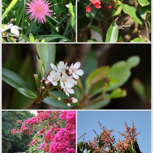 週末、散歩道の花、植物🌸🌿🚶♂️ ↖️ピンク色のガーベラ ↗️テイキンザクラ ⬅️シャリンバイ ↙️ブーゲンビレア ↘️マンゴーの花 沖縄も少し冷えた週末ですか 散歩🚶♀️には程よい天気で カメラ📸片手に心地よい 小一時間程の散歩でした🚶♀️🌸🌿