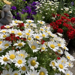 こんにちは 春爛漫 此処の牡丹は もうすぐ終わり 花壇では溢れ種からのノースポールが咲き乱れています 我が家のガーベラは オレンジが はや15年赤と白も10年ほど まだまだ元気そう 不思議だと思う事は 虫たちは 白が大好き ガーベラが好きというか? 白いガーベラが好きなようです 雨の日には前を向いてうつむき加減 晴れの日は上を向いて全身で日光浴 今年は 雨が多いから 忙しそうなガーベラです あっち向いたりこっち向いたり ご苦労様😊