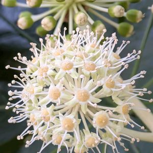 花散歩で✨ 連連投稿🙇 ⚪🟢🤍⚪🌿🤍🌿🤍♪ 1️⃣八つ手 2️⃣菊 3️⃣白南天 4️⃣紫羅欄花 5️⃣秋桜 🏷️ホワイトスタート に飛び入り参加させて頂きました🤍🌿⚪💕
