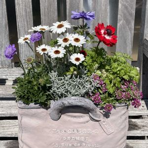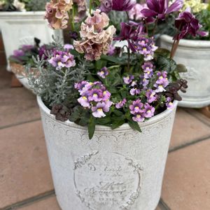 マジックアワー、アリッサム、サントリナの寄せ植え🪴 ビオラ2苗だけなのに色幅あってとても可愛いです🧺 お気に入りなので今年もお迎えしました✨