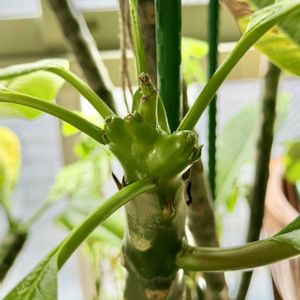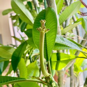 2022年種から育てている実生プルメリア🪴 昨年咲いた花輪くんの兄弟です🌼 まだお部屋で待機中😴 昨年秋ごろから花芽らしきものが少しずつ育ってます🌱 不思議なかたち🙄 うまく咲いてくれますように🙏 GWになってからお外かな😊 待ち遠しいね。