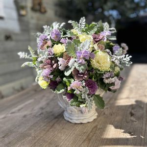 散策路、本日の締めくくりは花束・寄せ植えです。新春らしい彩りにたくさん出合えた1日でした。
