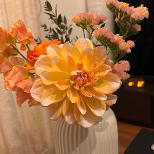 おはようございます。 今朝の横浜は曇り空です。 少し気温が低い。 今日の仏壇の供花です。 クセニア、ダリア、デンファレの合わせ技、色合いも少しオトナっぽいコーデです。(笑)