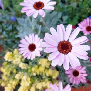 大きなテラコッタ鉢を使いローダンセマムのリルピンクやシルバーレース、ヘリクリサムを入れて寄せ植えを作りました😊 ローダンセマムは背がまっすぐ伸びてかっこよくスタイリッシュな雰囲気になりますね🪻
