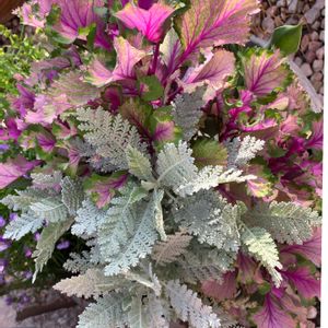 踊り葉牡丹がドンドン伸びて 色鮮やかになってきました シルバーレースも消えそうになって心配😟してたけど 上手く育ってきてます✌️