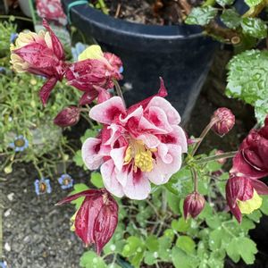 4月になりました 蕾付きでお迎えしたオダマキが咲き始めました 前にも同じ苗をお迎えしてるのにすっかり忘れて又お迎えしてしまいました⤵️ 可愛いな〜って思うのは何度見ても気になるのかとつくづく思いました 3枚目 アリッサムとシルバーレースの寄せ植えもモリモリになって植木鉢から溢れて来ました 4枚目 ブルークローバーも次々咲きます 昨年からどこのホームセンターでも見かけるようになって来ました 5枚目 昨日は花友さんを見習って植木鉢にバラのタグ🏷️を固定しました