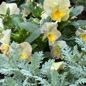 🌿💛🤍ビオラ🤍💛🌿 シルバーレースとの寄せ植え 孫を預かるために長女のマンション まで🚙 エントランスにてパチリ