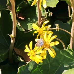 先週の昼下がり ツワブキの花で蜆蝶が日向ぼっこしていました