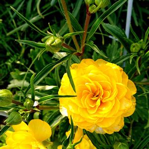 おはようございます🎵 昨日は肌寒い雨の1日でした☔ 1️⃣、2️⃣ラナンキュラス ラックス! 割引してあり、初めてお迎えしてみました😁‼️ 花弁がワックスをかけたように輝く艶と背が高く、病気にも強く植えっぱなしでも大丈夫とのことですが、 夏が心配ですね😅💦 3️⃣、4️⃣庭のニワウメ! 初夏には真っ赤な小さい実がなります😉‼️ 5️⃣庭のツワブキとチンゲン菜! 艶のあるフキの葉から「艶葉蕗」が転じた説が有力! 島根県の津和野の地名もツワブキが自生する野(つわのの)が由来という説も! 蕗より好きで、すぐ食べれるように庭に植えました🤭🎶 チンゲン菜の蕾も、菜の花代わりにいただいてます😉‼️ 菜の花より食べやすいかも⁉️