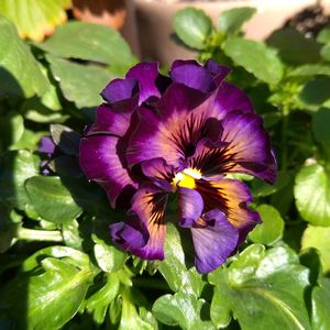 ①見切り品でどんな花が分からず買ったパンジーが咲きました😍 ②Xmas飾りを片付け、門松寄せ植えを正面へ移動 ③日の当たらない所で咲いているボリジを切って飾ります