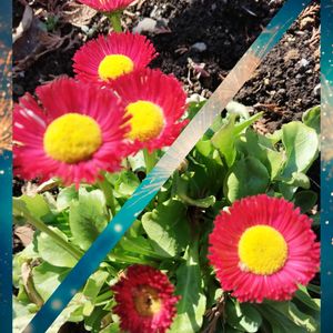 散歩道🚶、花壇でデージーが咲いています🌸🌸