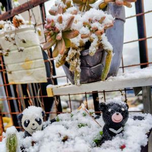 今ね····· めっちゃ🌀強風&雪❄ 1⃣🐼🐻️が雪を被って可愛かった(๑˃ᴗ˂๑) 2️⃣白檀🌵 オヤジ見てると風邪ひきそう🤣💦 3️⃣アトランティスのBABY💓 かわいい(*´艸`) 4⃣赤いデージー❤️ ちょっと色っぽい(*´👄`*)アハ~ン