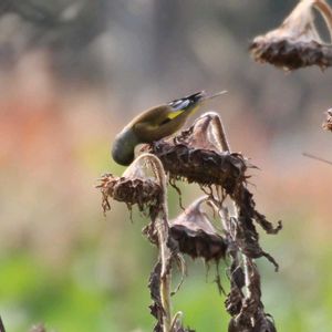 美味しいよ~特集🤣 寒くなって花が終わった🌻 貴重な種(カワラヒワ) 熟した柿、甘くて😋(エナガ)