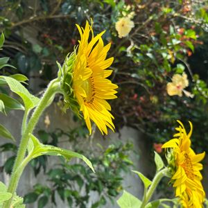 ひまわり スマイルラッシュ🌻 🔍️してみたら 💛がいっぱい😆🎶 今日も 笑顔で🍀 日当たりの悪い我が家じゃ どうかなぁと 思いながら 初めてお迎えしたミニひまわり🌻 なんとか 開花してくれてます